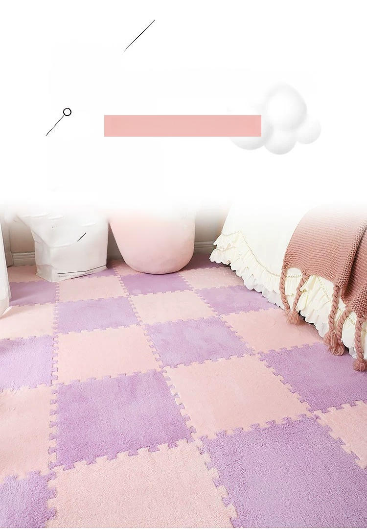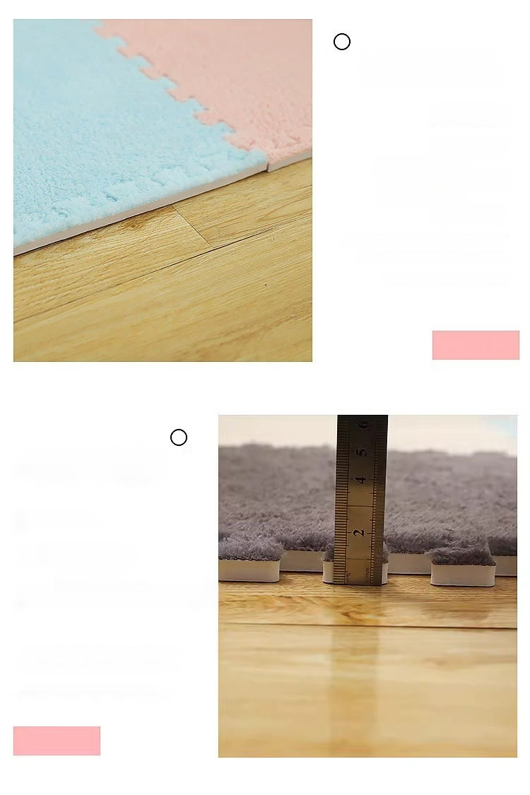 Langlebig und rutschfest: Bequemer und warmer Plüsch-Teppich mit Patchwork-Design.