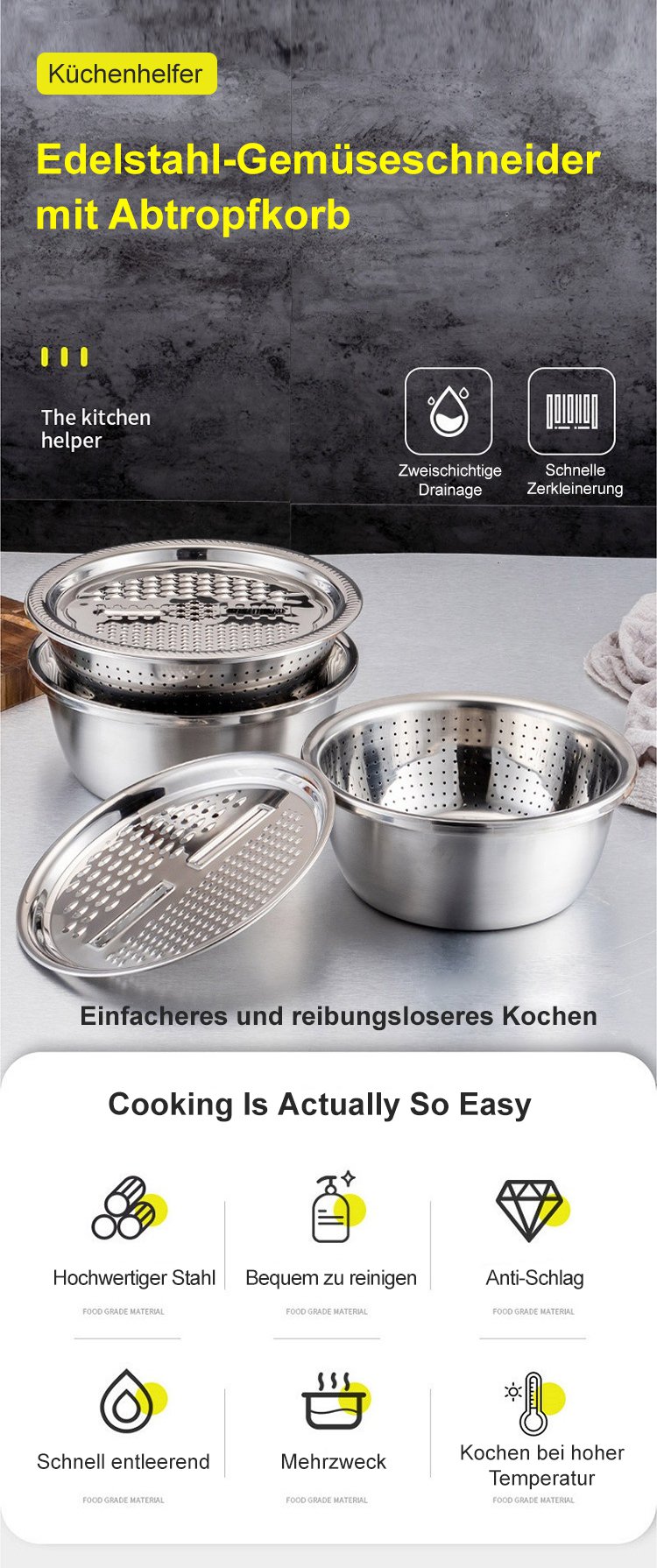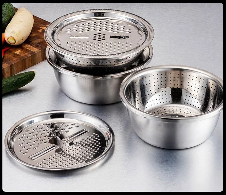 Das Set multifunktionaler großer Edelstahlmischschüsseln 304