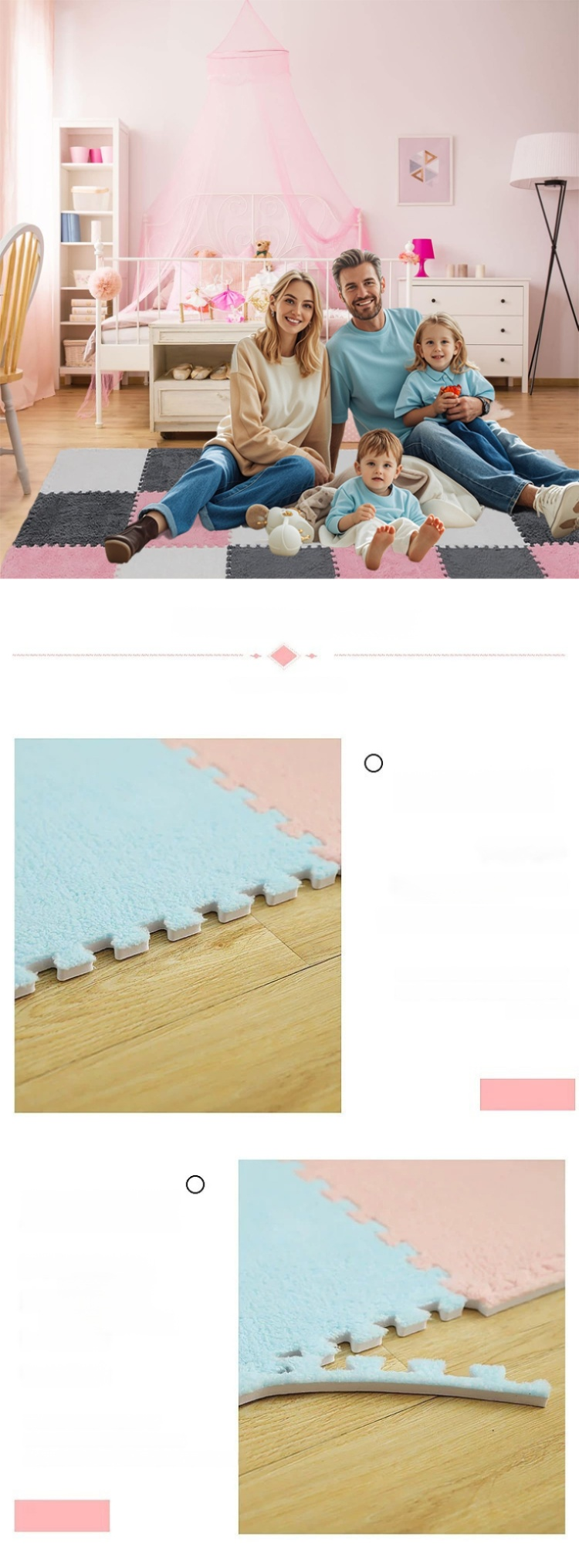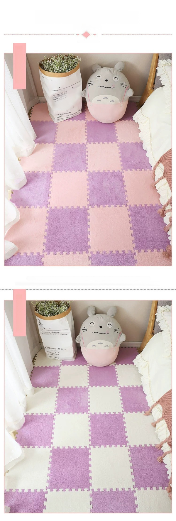Langlebig und rutschfest: Bequemer und warmer Plüsch-Teppich mit Patchwork-Design.